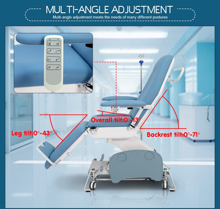"電動升降,靠背,腿部調節和整體傾斜